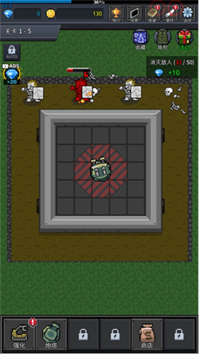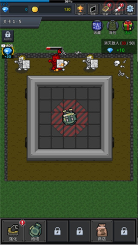 1、首先我们进入种植炮塔游戏中,前期我们炮塔攻击伤害和等级并不高,所以先要击败一些怪物来获得金币;