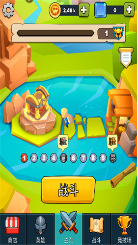 在主页我们可以看到前面有10新手可以挑战的关卡,成功完成10个关卡的挑战就可以解锁后续的战斗和竞技场了