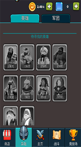 点击英雄进入我们可以查看各种英雄和军团,选择具体的英雄或者军团还能够查看具体的属性,比如攻击力,防御力以及血量等等。
