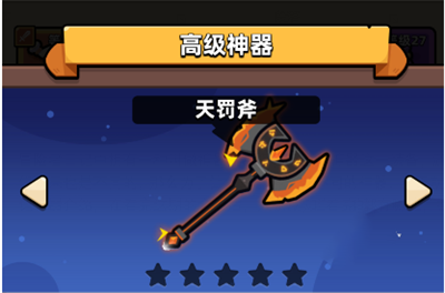 第四件神器叫做天罚斧,这是一件拥有全局生命值百分比提升和在技能触发八次以后,降下天罚进行攻击效果的神器,该攻击可以造成相当于攻击力500%的闪电伤害,这伤害是非常高的。