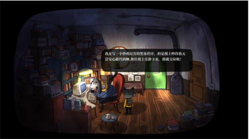 去找羊驼要房租,把房租给房东,得到顶楼钥匙后来到顶楼。来到顶楼见到有绿门和蓝门两个房间,还有一架飞行器,狗老头就在飞行器里面。