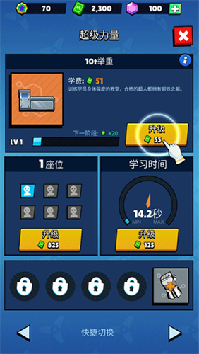 4、例如训练力量的设施,升级学费,学习时间等等。