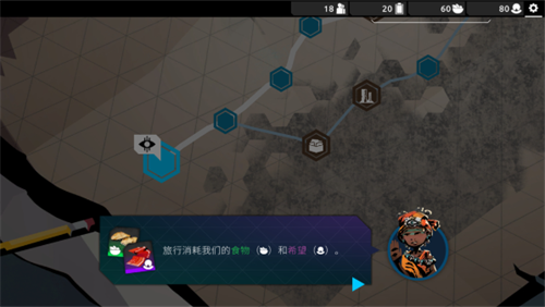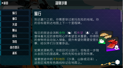 你将带领一群被放逐者和难民,在随机生成的危险地图上选择前进路线。每个节点都可能遇到事件、战斗或宝藏。