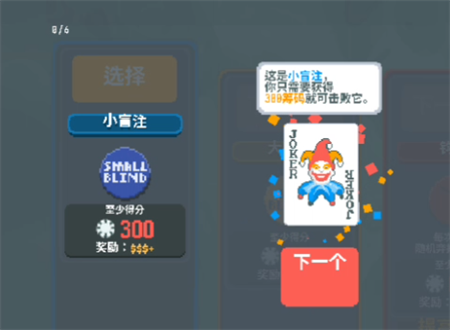 1、在小丑王的对局中,玩家的核心目标是不断积累筹码,用实力击败场上的盲注对手。