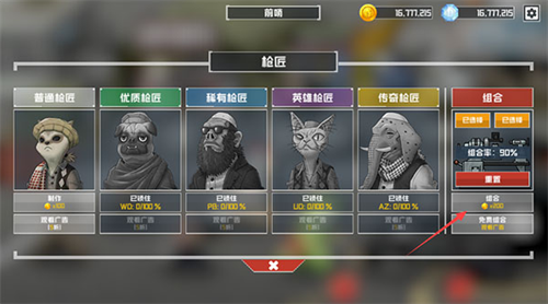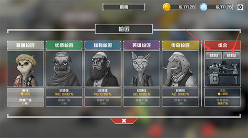 1、在枪匠界面中点击【材料1】【材料2】按钮放入材料枪。