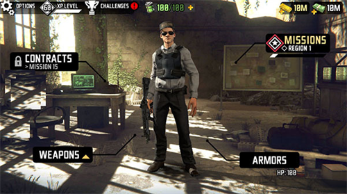 2、狙击模式:熟练使用不同枪支的属性与性能,相信以你的智慧可以找到最佳的射击方式。