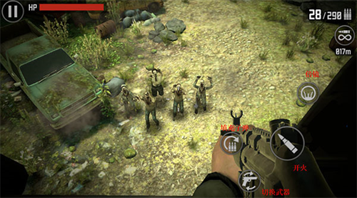1、猎杀模式:来自四面八方的僵尸将蜂拥而至,让你防不胜防,请快速拿起枪支射击。