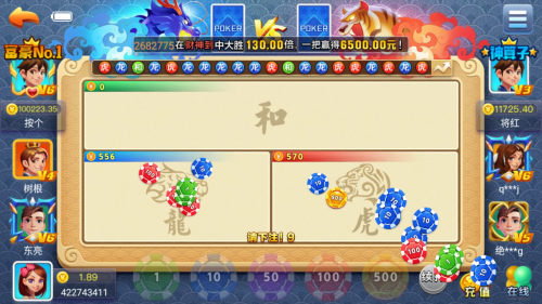 进入龙虎大战专区后,选择适合自己水平的即可开始对战