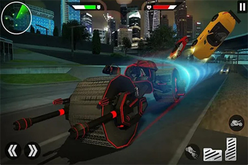 3、敌人的车辆与机器人会从不同方向发动突袭,需要观察敌方移动轨迹并灵活走位,在躲避攻击的同时找准反击时机。