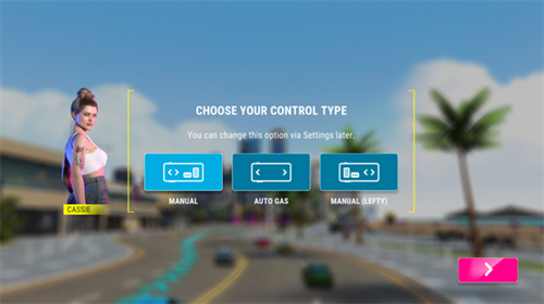 1、打开极限竞速专家破解版,点击屏幕开始游戏,选择操纵方式;