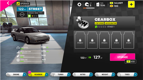 8、以及升级赛车配件,提升赛车的属性,以此更好地进行驾驶。