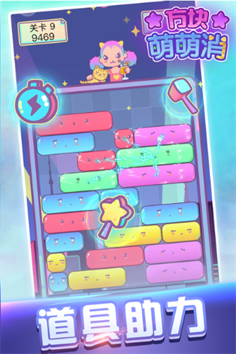方块萌萌消破解版是采用了Q版卡通风格、休闲消除玩法的手机游戏,强大的思维能力和技巧是通关重要的能力,这款游戏并没有多么杂乱的游戏规则,操作造成极大影响,但是便是非常令人上头,玩家在这里能够看到各种类型的小方块,玩家需要水平移动各种类型的方块,然后成功消除即可。此外,该游戏还加入了一系列类型的游戏道具,玩家需要在游戏关卡中合理使用各种道具,这样才能够更好的完成闯关。关卡难度是从易到难的,玩家能够通过完成一系列关卡解锁更加充满挑战性的关卡,这样一来就能够为玩家带来更加不错的游戏乐趣。同时,该游戏还非常考验玩家的思维以及观察能力,能够让玩家在每一次的对局之中获得思维上的提升。此外,该游戏更是加入了一系列消除特效,给玩家带来视觉上的极致享受。